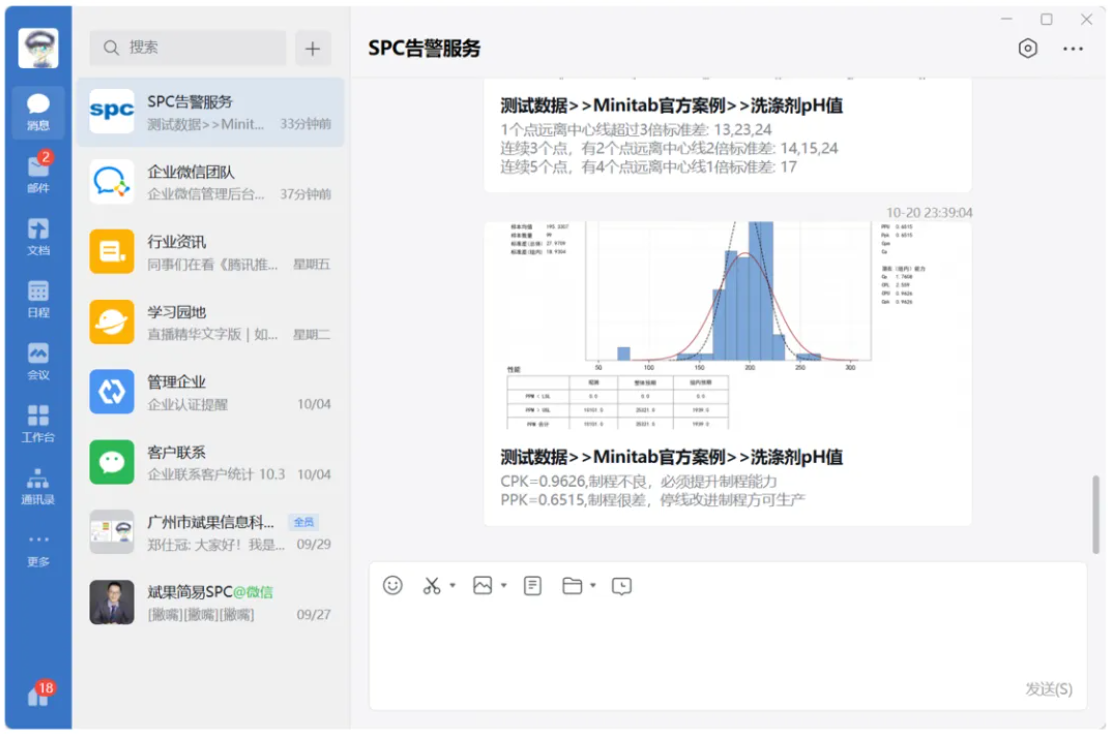 或许是市面上的SPC软件中,SPC异常告警方式最多的SPC软件,总有一种推送方式适合你的。 可以设置多个告警规则组,让不同的检测项目应用不同的告警规则配置。 可以配置多个通知对象组,让不同的检测项目推送不同的用户。 是SPC软件主动发布到MQTT服务器的,你的应用、设备只要订阅对应的主题,就可以自动收到SPC告警,你的设备、应用可以根据不同的告警内容去做不同的事情,比如发起质量改善流程、OA通知、设备亮灯等。 一、SPC异常告警的配置
