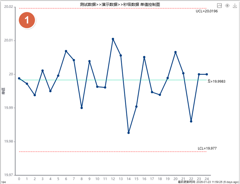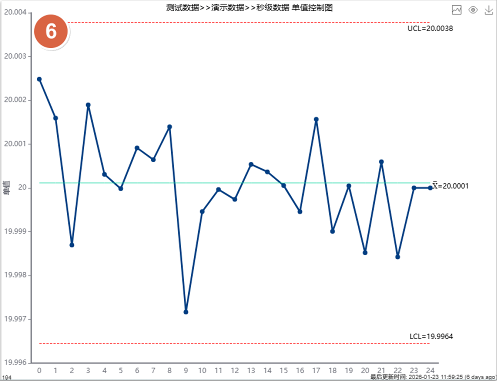 • 图6:采样 I 控制图(按照每分钟获取均值作为单值描绘,可配置)