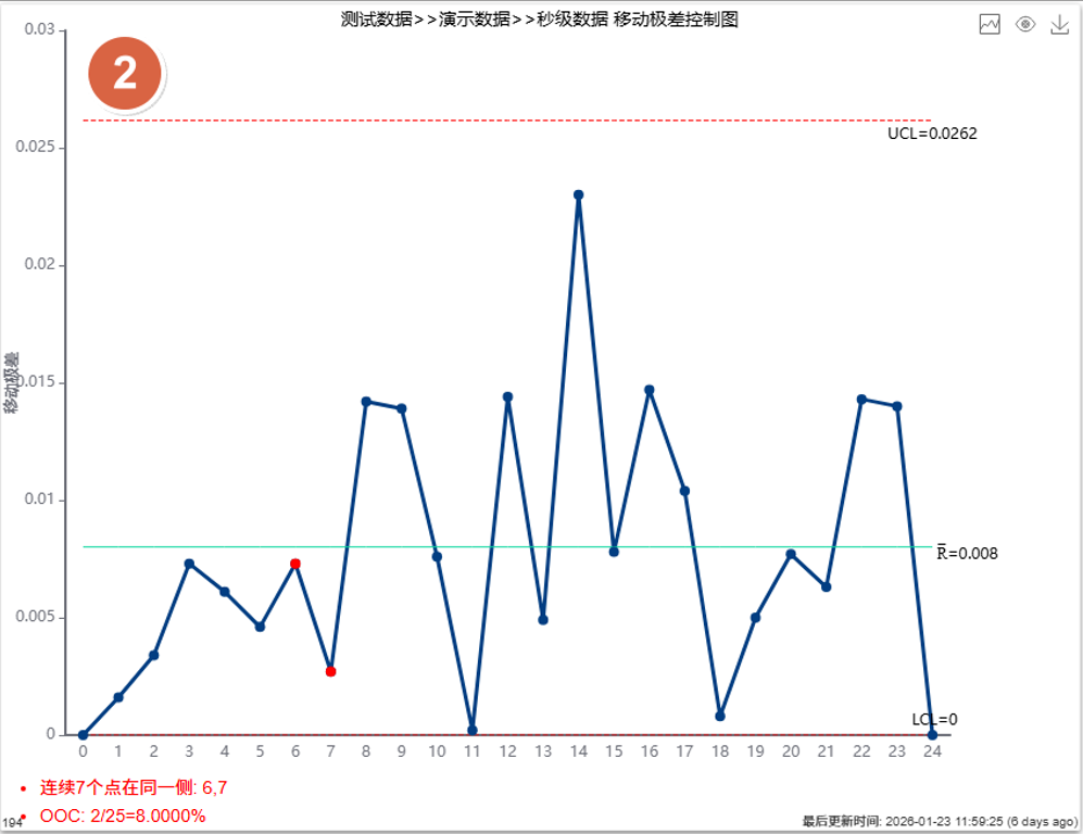 我们仅仅针对这一个检测项目做一个如下的单值六大控制图看板: