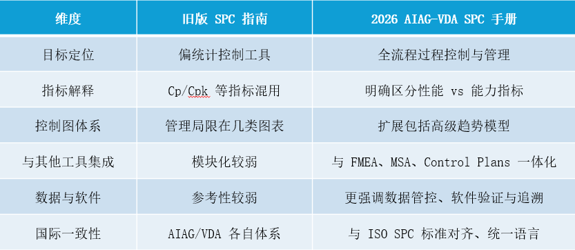 这一新版手册不仅继承了过去 AIAG 和 VDA 在 SPC 应用方面的最佳实践,还在 全球统一、方法系统化和实践落地性 等方面进行了全面优化,是 SPC 体系迄今为止最重要的一次重塑。