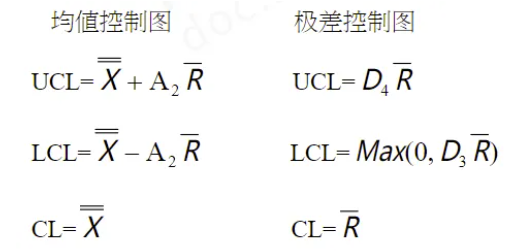 对于子组大小<=10,我们需要使用Xbar-R控制图,Xbar控制图和R控制图的控制限计算如下: