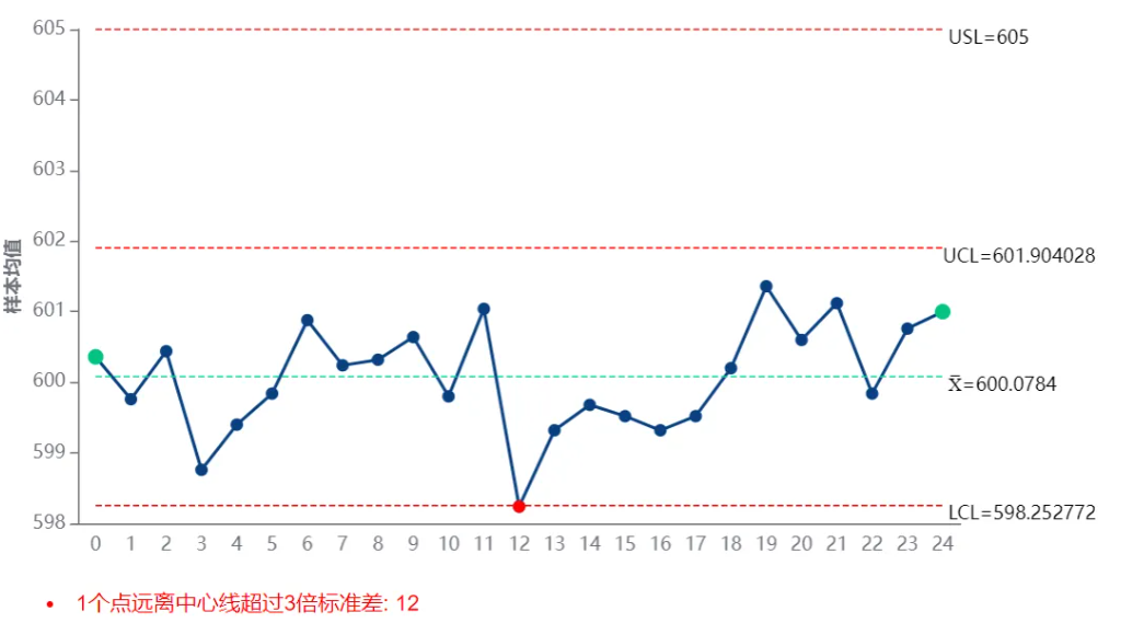 异常与稳定性:即使过程特性符合规格限,如果过程表现出过大的波动(如数据点超出UCL或LCL),也可能意味着过程不稳定。控制限帮助识别这种潜在的不稳定性。