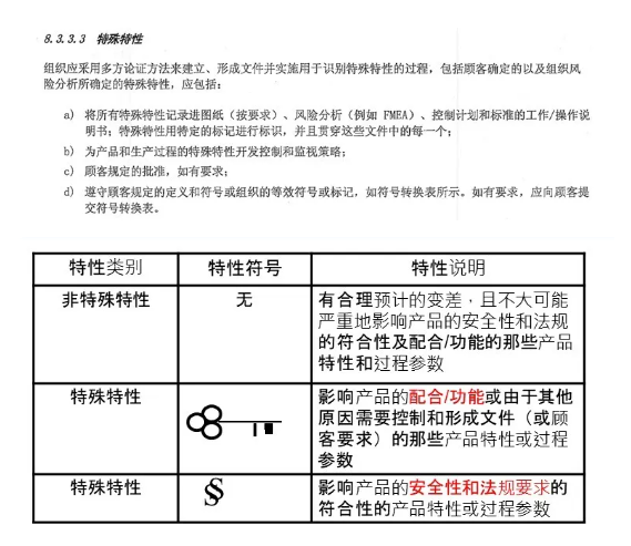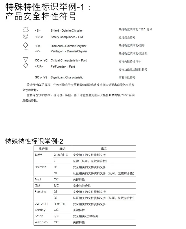 特殊特性必须使用客户规定的符号进行标识吗?---不一定,可能使用客户规定的符合或等效符号,但必须提供符号转换表。