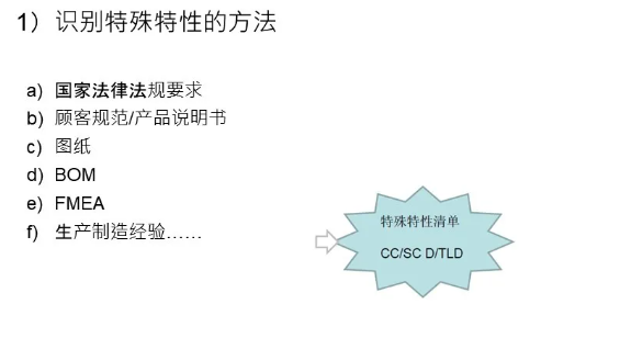 特殊特性有哪些识别的方法?特殊特性必须用FMEA来识别吗?---不一定,特殊特性识别的方法,包括国家法律法规要求、顾客规范、图纸、BOM、FMEA、生产制造经验来识别?