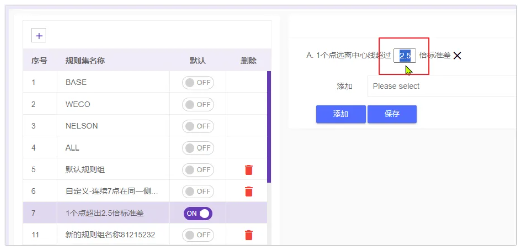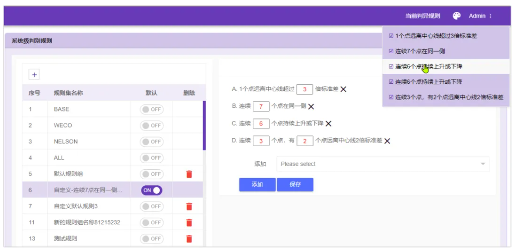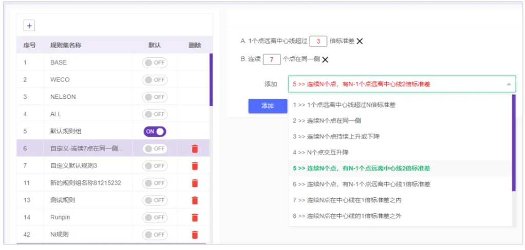 这个判异规则组可以被任意的检测项目绑定,让检测项目锁定某个判异规则组