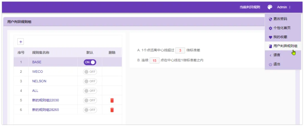 可以创建任意数量的判异规则组(只能有一个默认生效)