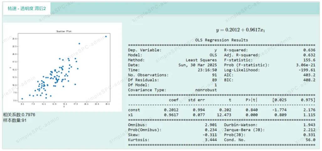 可以看出来,我们只要每提高转速1,透明度就会提高0.96,这样就可以指导我们如何提高生产质量了。