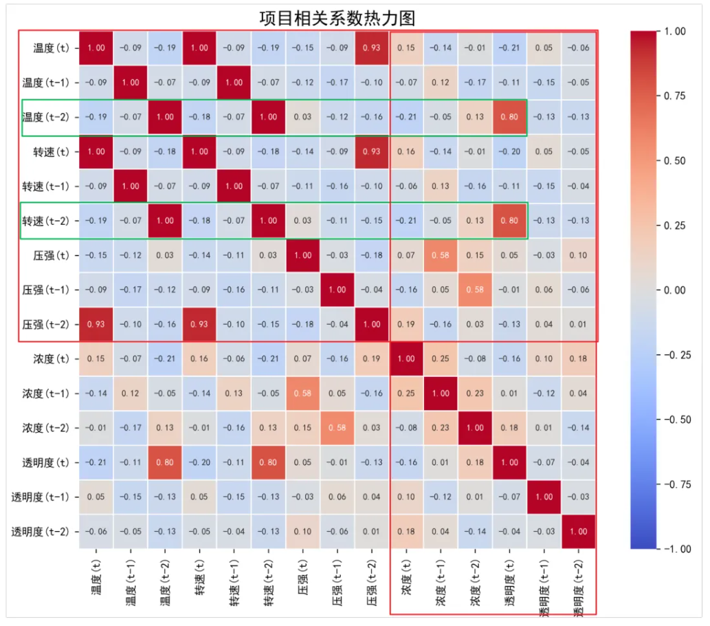 另外我们还发现温度t~转速t,温度t-1~转速t-1,温度t-2~转速t-2的相关系数是1